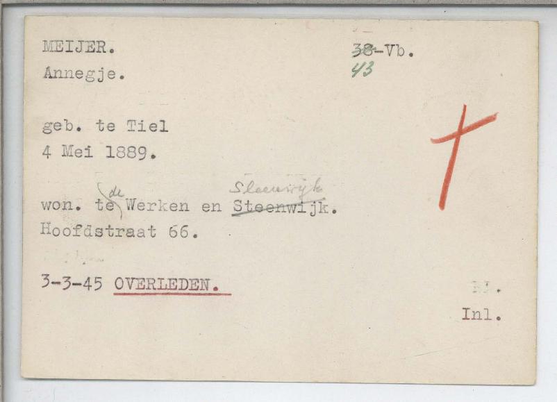 NL-HaHGA 1165 01 inventaris 152 EN OF 153 LBD 1945 Kaartsysteem bombardement 3 maart, Slachtofferkaart 043 VB